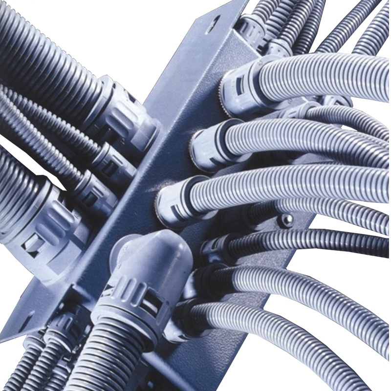 Не менее критично использовать правильные фитинги там, где электропроводка подключается к подвижным элементам — дверям щитов, крышкам шкафов, станкам, робототехническим манипуляторам. В этих случаях на гофру регулярно воздействуют изгибающие и крутящие нагрузки, и если труба не зафиксирована штатным фитингом, она быстро выйдет из строя. Иногда такая ошибка приводит не только к дорогостоящему ремонту, но и к остановке целого производственного участка.