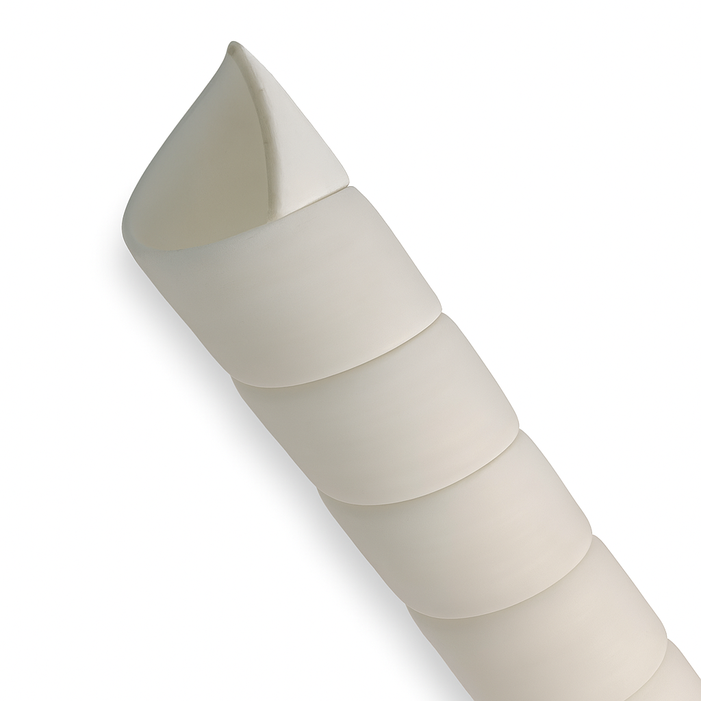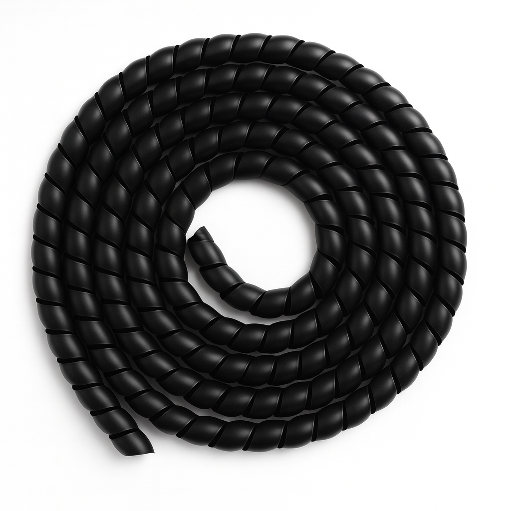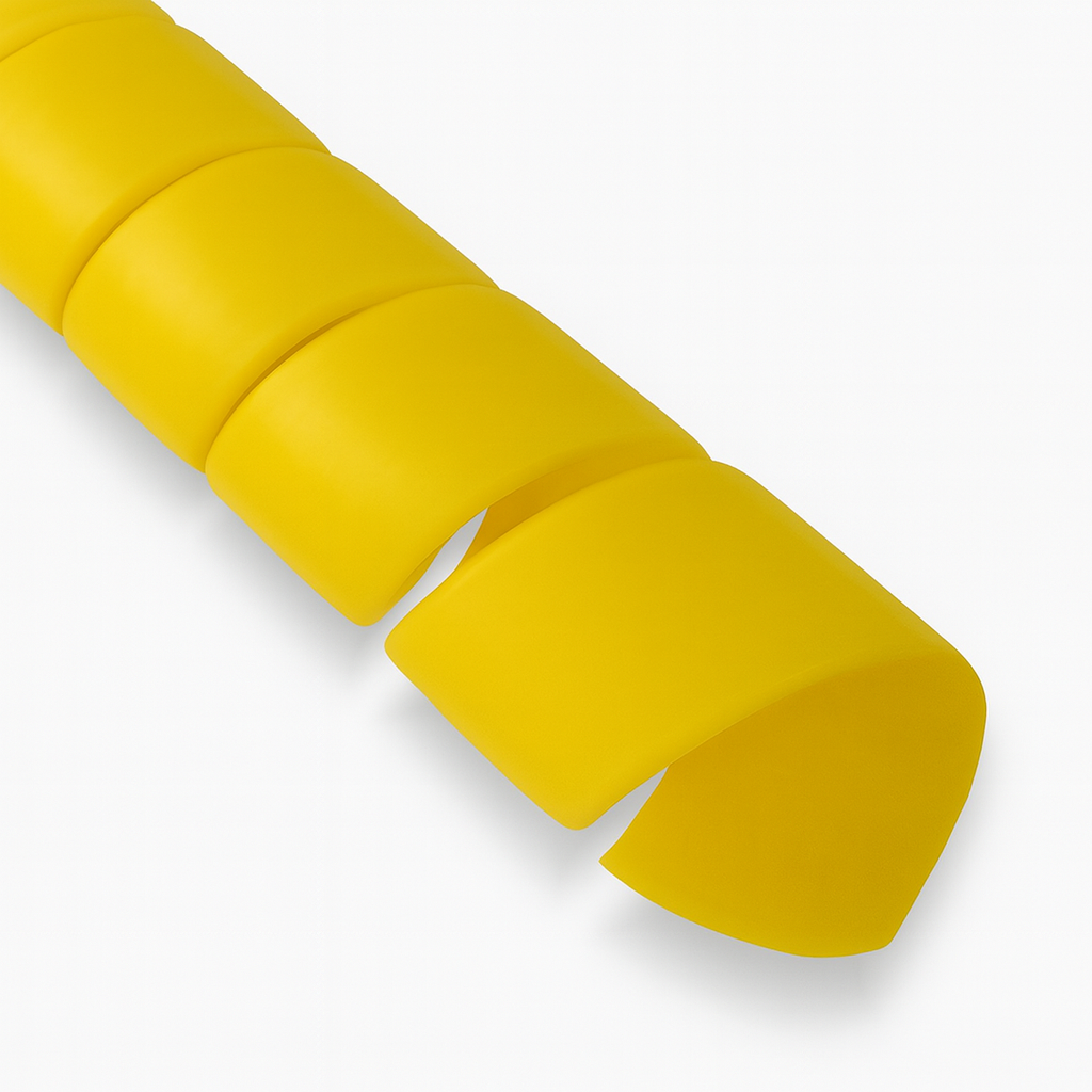 Спиральная пластиковая защита SG — это витая лента из промышленного полипропилена, которая надевается поверх уже смонтированных кабелей, проводов и шлангов без их демонтажа. За счёт спиральной геометрии изделие плотно охватывает трассу, распределяет ударные и абразивные нагрузки по поверхности и снижает риск порезов и истирания оболочки. Гладкая внутренняя поверхность исключает повреждение кабельной изоляции и обжатых рукавов, что выгодно отличает полимерную оплётку от металлических спиралей в условиях вибраций и регулярных циклов изгиба.